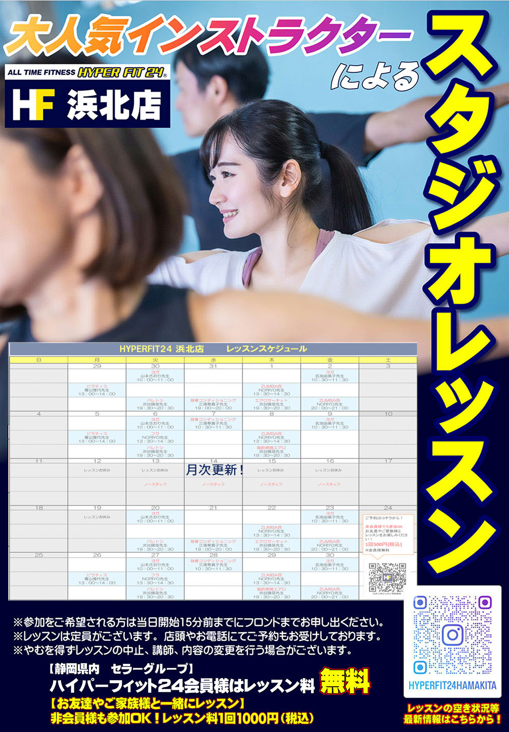 静岡県内4店舗の会員様(DAY会員様除く)はレッスンが無料です。