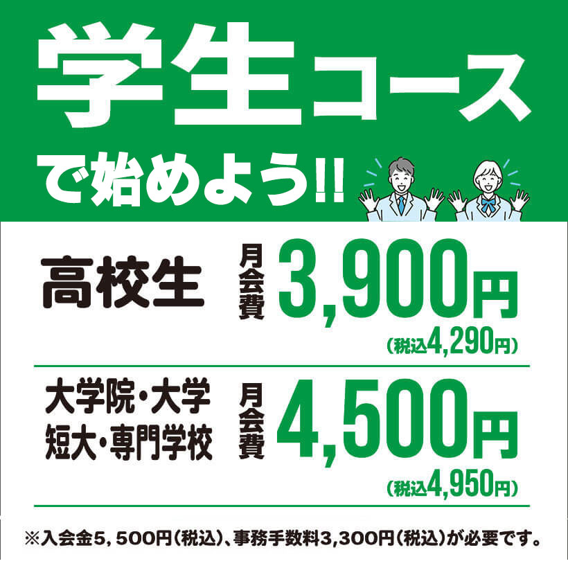 学生の運動を応援!学生コースで始めよう!